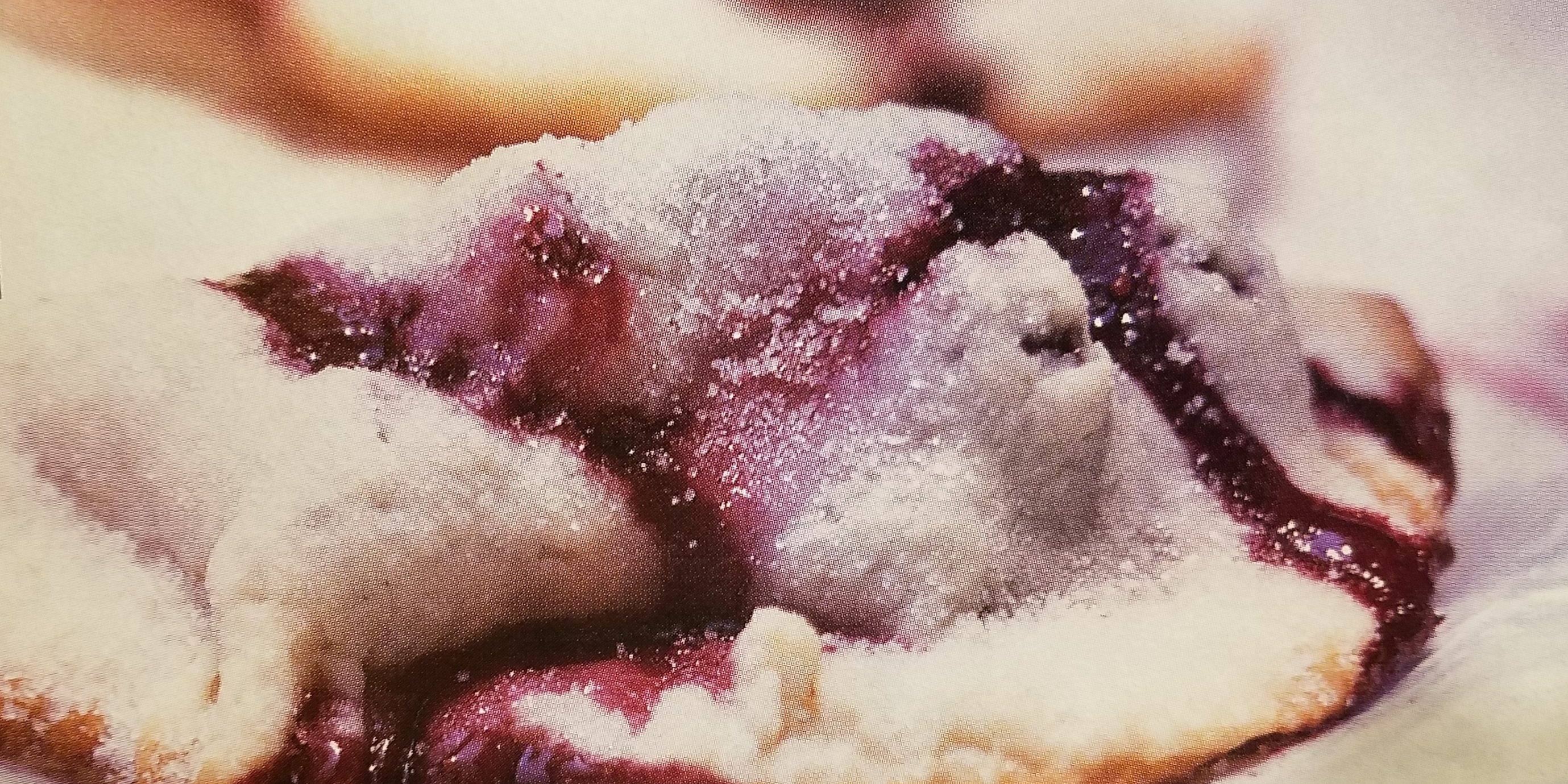 - To prepare filling, combine bleberries and next 4 ingredients (blueberries through juice) in a bowl. Working with 1 dough portion at a time, remove plastic wrap from dough. Place dough on a lightly floured surface, and brush with egg white. Spoon about 2 tablespoons blueberry filling onto half of circle. Fold dough over filling, and press the edges together with a fork to seal. Place the turnover on a foil-lined baking sheet coated with cooking spray. Lightly coat turnover with cooking spray, and sprinkle with 1/4 teaspoon sugar. Pierce the turnover with a fork. Repeat procedure with remaining dough, egg white, filling, and sugar.