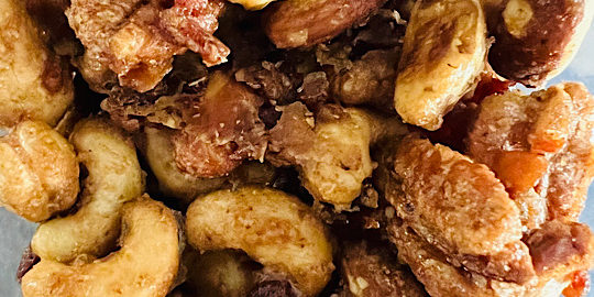 Salty and sweet bar nuts.