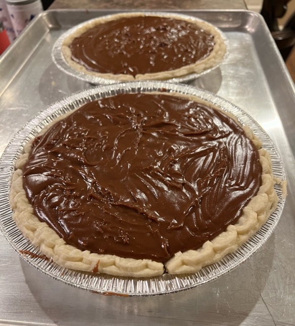 Chocolate Cream Pie-Sue’s Variation 1 1/2 cups sugar2/3 cup all-purpose flour1/2 tsp salt1 cup milk12 ounces evaporated milk1/2 cup water4 eggs2 Tbs butter or margarine3/4 cup semi-sweet chocolate chips (Hershey's)1/4 cup milk chocolate chips (Hershey's)2 tsp vanilla extract2 baked and cooled 9-inch pastry shells Stove-Top MethodIn saucepan mix sugar, flour and salt.Combine milk, evaporated milk,…